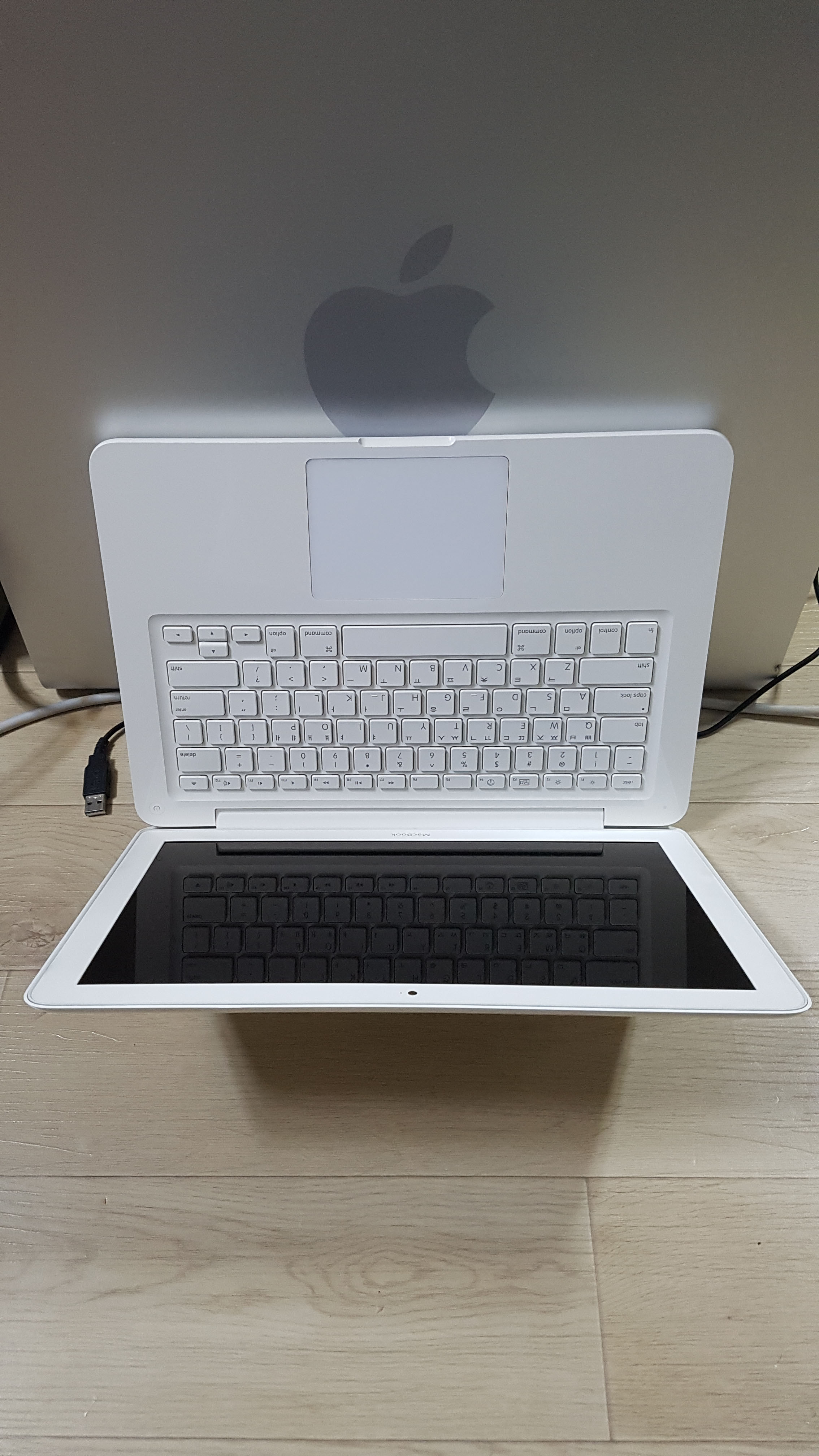 구성품은 외관좋은 화이트맥북과 새로 산 애플충전기입니다