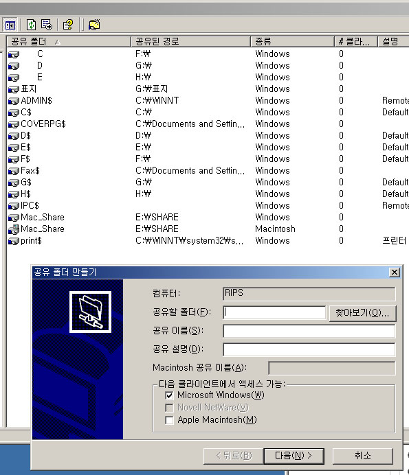 저도 우연히 알게 된건데 윈도2000서버에서는 맥랜없이도